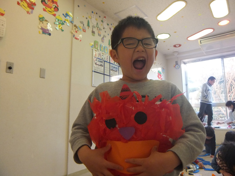 みんなで、恵方巻きを作ったり、鬼のお面を作り、準備万端!!