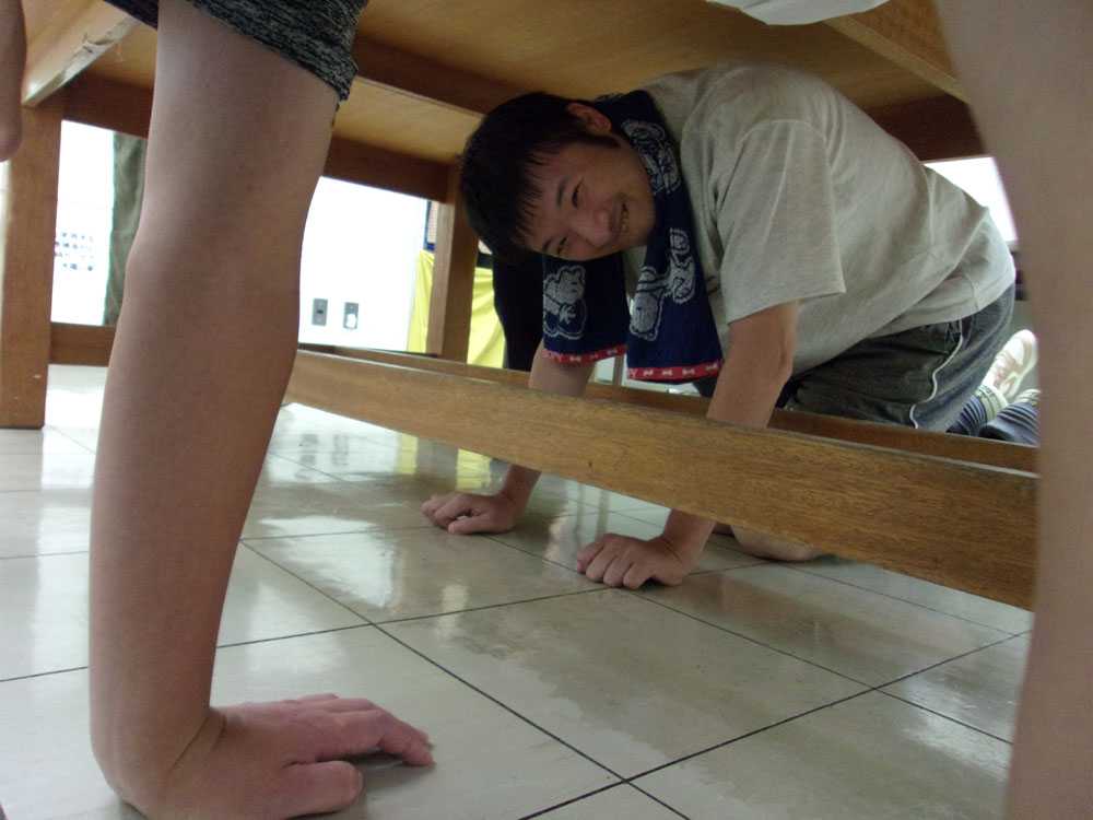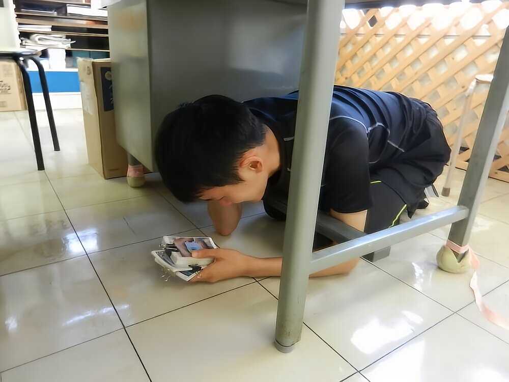 地震の合図とともに、机の下に潜る・頭を覆うなど、頭部を保護する行動を取りました。