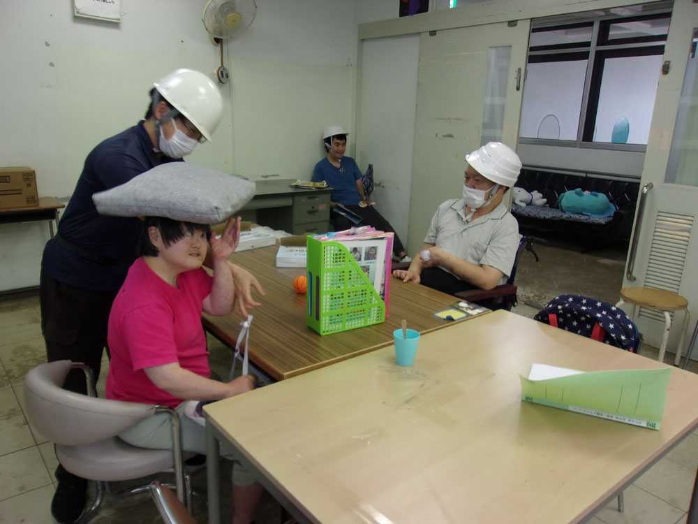 昨年、藤の実会(家族会)から寄贈いただいたヘルメットを被る方も。