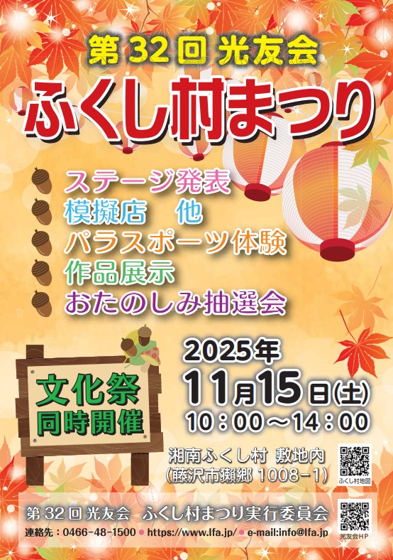 2025年11月15日(土)「第32回光友会ふくし村まつり」を開催いたします。