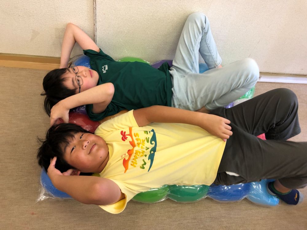 また、バルーンマットでは、マットの上を歩いたり寝転がったり・・・、初めは恐る恐る遊んでいた子ども達でしたが、寝転がり楽しめていました。