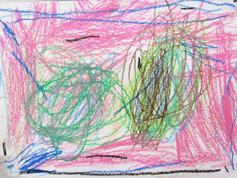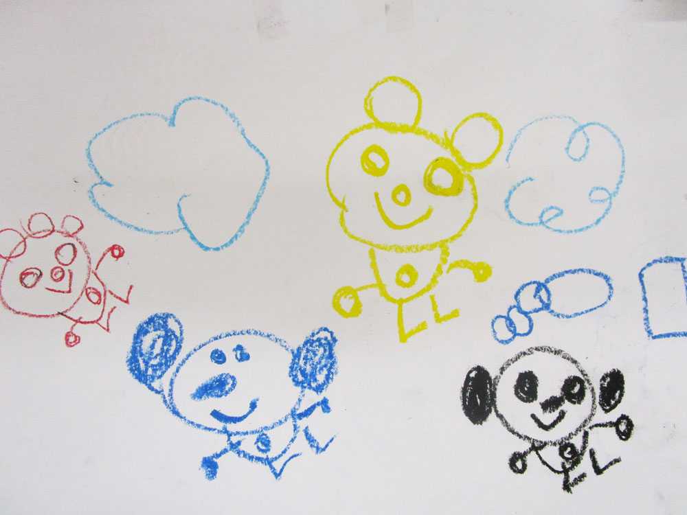 好きな色やたくさんの色を使いながらお絵描きをし、クラスの壁は子ども達が描いた絵でいっぱいになることもあります。