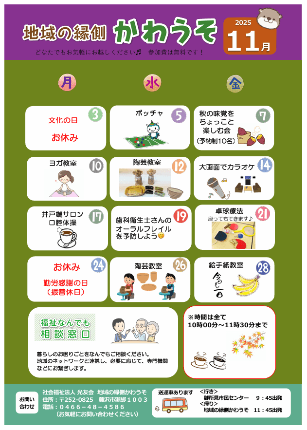 7(金) 秋の味覚をちょこっと楽しむ会(予約制10名)