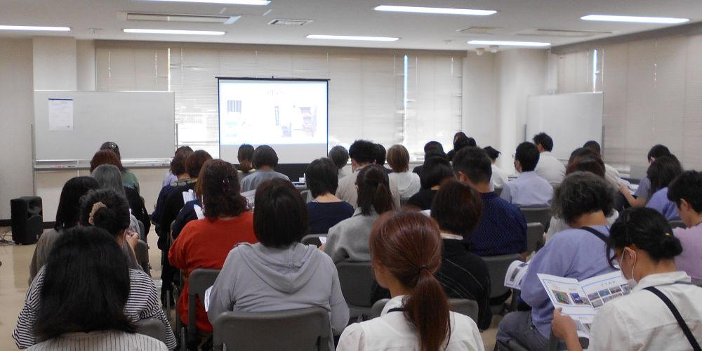 この講演会は、「はじめまして にじのわです」と題して、にじのわの紹介と発達障がいの特徴と関わり方の講演をしました。ご近所にお住まいの方や当事者のご家族の方、支援機関の職員の方など、祝日にも関わらず20代から90代の方までたくさんの方々にご参加いただきました。