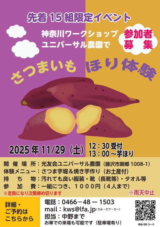 神奈川ワークショップより「さつまいもほり体験 参加者大募集!」