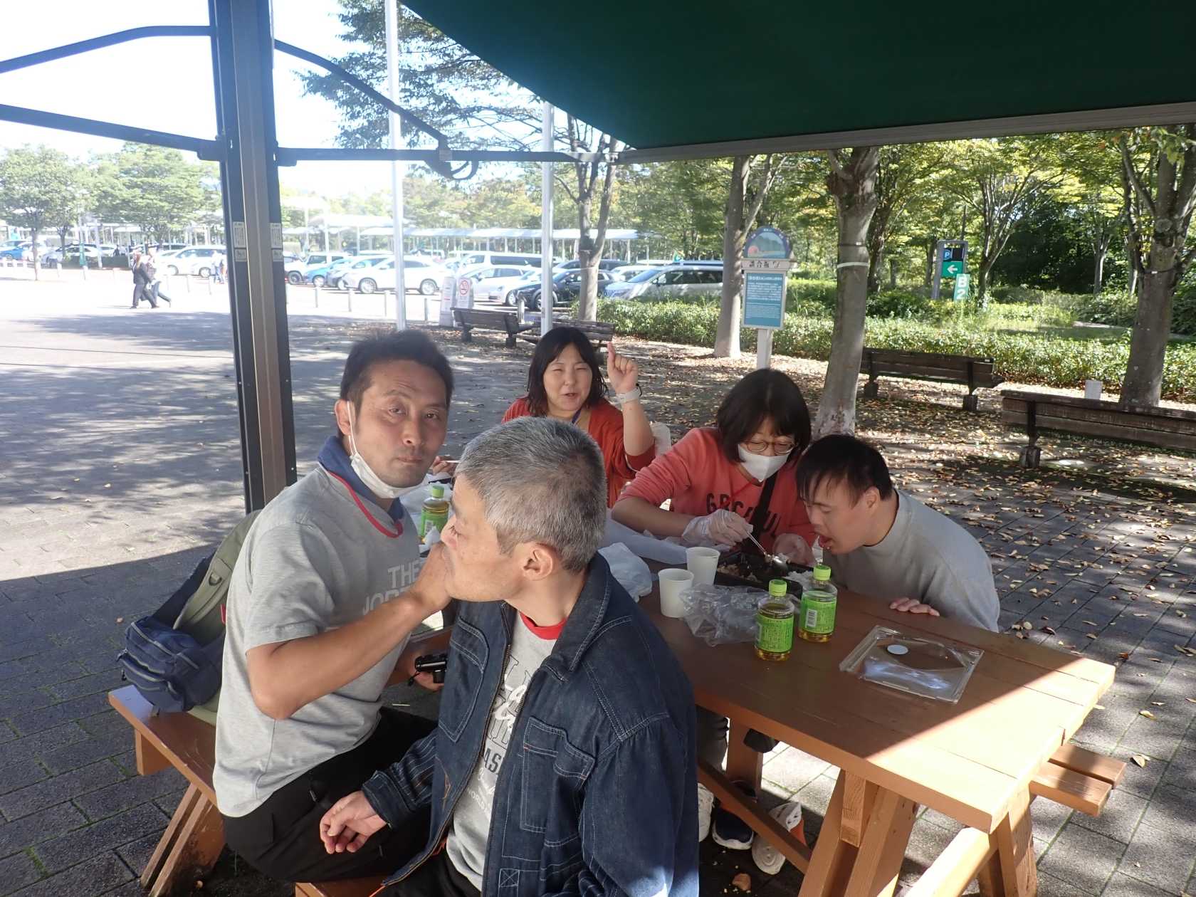 昼食は、談合坂SAにて魚の塩焼きなどが入ったお弁当を各班で、好きな場所を見付けてみんなで美味しく食べました。
