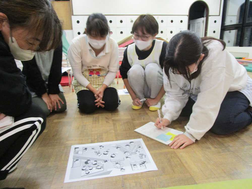 職員会議の時間を使って、KYT(危険予知トレーニング)を実施しました。お題のイラストを見ながら「ここが危ないかもね」「ここ気をつけた方が良いかもしれないね」といった意見交換を行ないました。各グループ活発な意見交換がされていました。今後もKYTを実施して、お子さんが安全に楽しく過ごしていただけるよう尽力していきます!