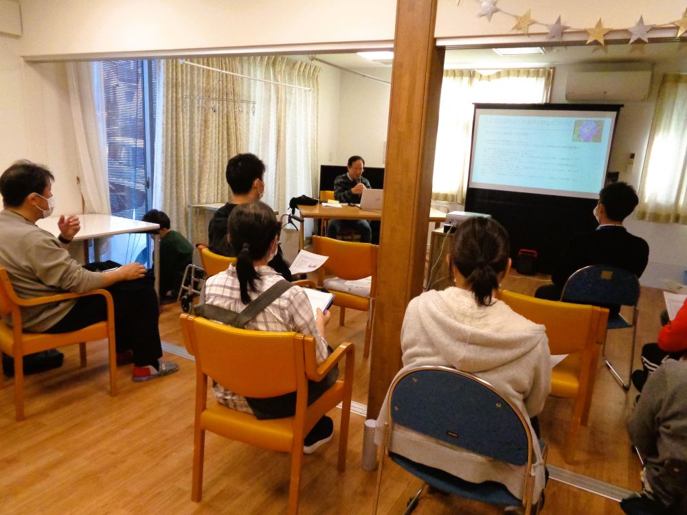 12月10日にひだまりでは外部の講師をお招きして、1時間の講話と1時間の質疑応答の形式で『虐待防止研修会』を実施致しました。講師の体験談や実際に起こった事案、福祉を取り巻く社会情勢を含めたお話や、研修内のチェックリストで普段の自分を振り返ることで、虐待や不適切な関わりを防ぐために大切なことをたくさん学ばせて頂きました。『虐待を防ぐにはルールを定めるだけでは充分ではない。支援職と利用者が双方向の人間関係を作ることが肝要で、そのためには利用者の失敗を受容することや、時には余暇やレクレーションで心を通わせ、互いの心を育むことが必要である。』という講師の言葉がとても参考になりました!