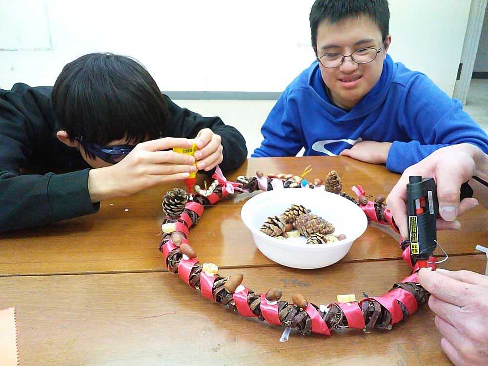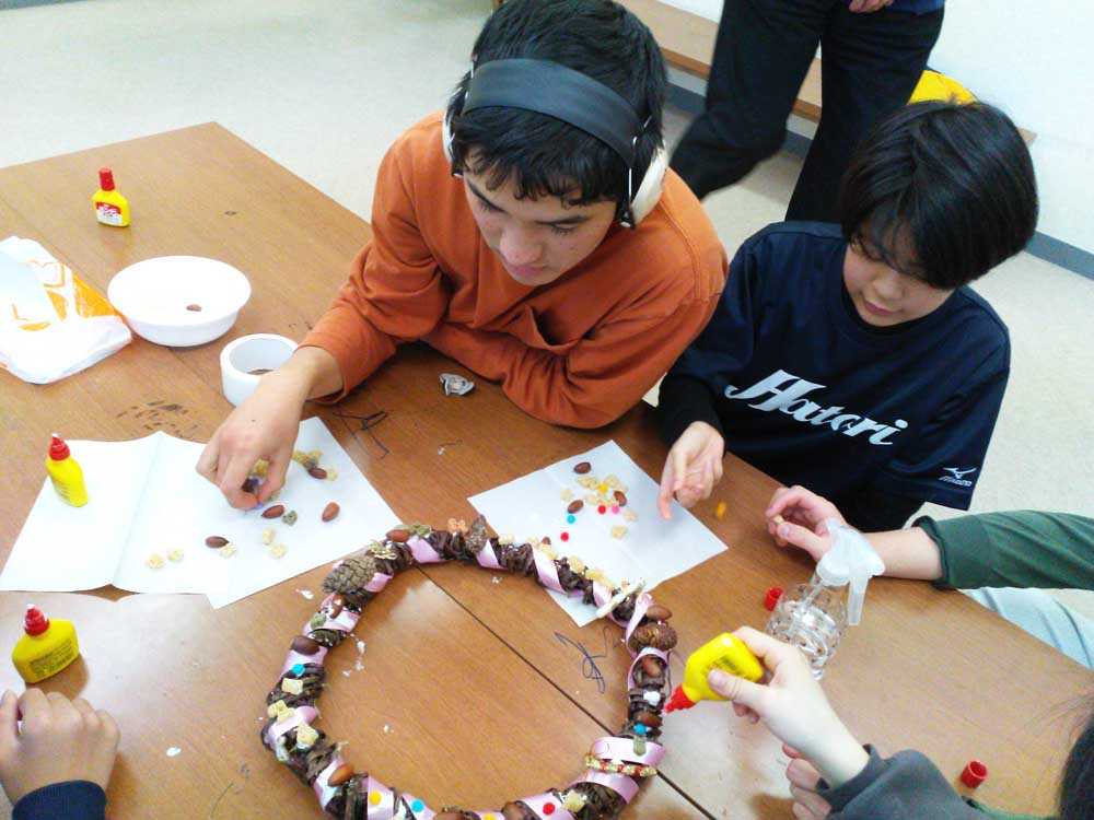 ほっとスペースでは、12月はクリスマスイベントとして、15日(月)~19日(金)までクリスマスのリース制作を行いました。