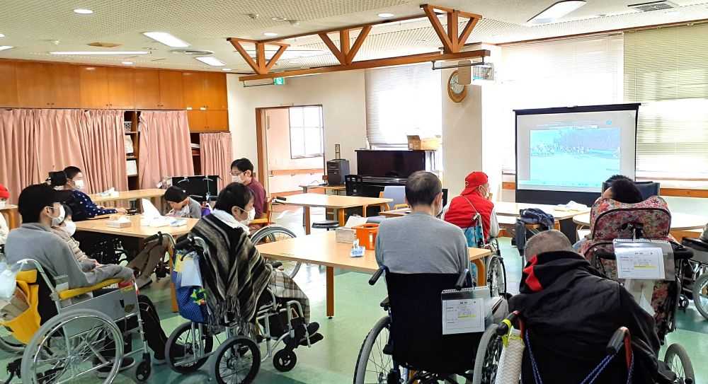 「どんなお店が来るのかな?」「何を食べようかしら?」と前々から楽しみにしていた村まつりに参加しました。当日はボランティアの方々のご協力もあり、皆さん思い思いのお買い物をし、購入した食べ物やお祭りバージョンのお昼ご飯をいただきました。また抽選会ではくじ引きに一喜一憂、大変盛り上がりました。ご家族の参加もありとても賑やかなお祭りとなりました。