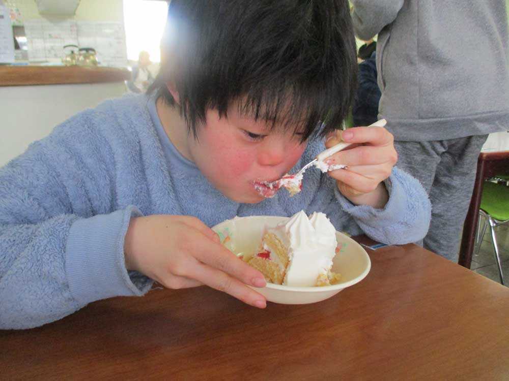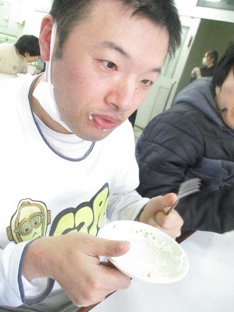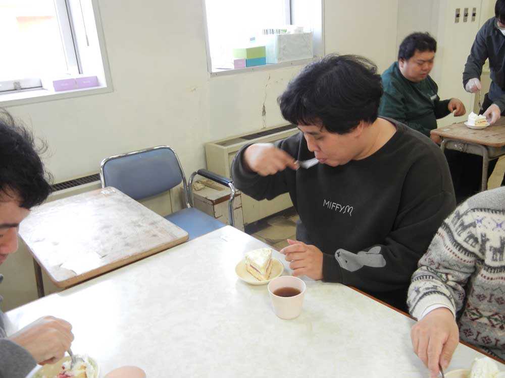 おやつ時には、ケーキを前に瞳をキラキラと輝かせていて、利用者の中には、クリームが口についてしまい「サンタが来たよ」と楽しまれている方もおり、とても美味しそうに召し上がる様子がたくさん見られ、クリスマス気分が盛り上がる、嬉しさを感じるおやつタイムとなりました。