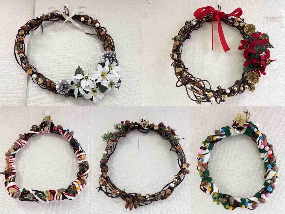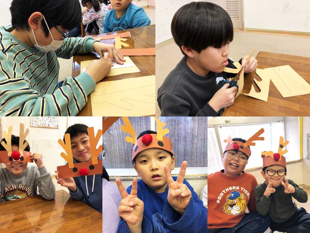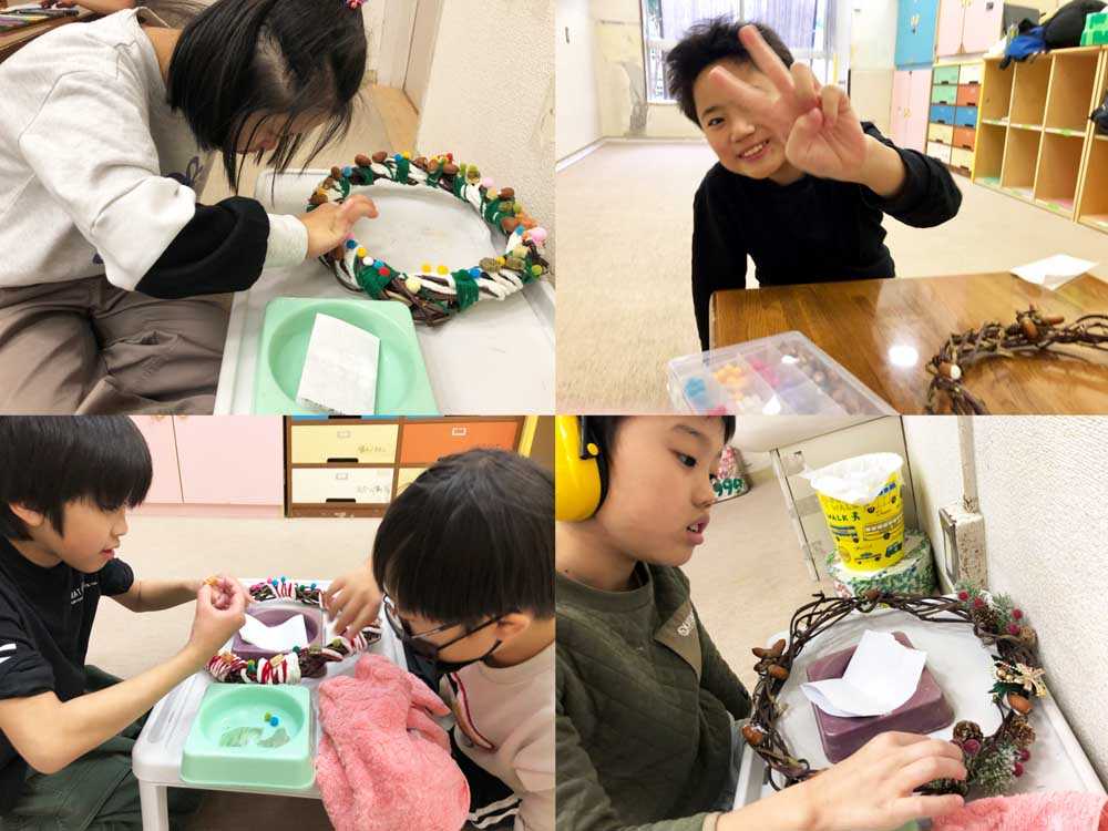 クリスマスに向けて、リースやトナカイのヘアバンド作りを行いました。手先を器用に使って飾りの接着やトナカイの角の型とりを行う姿が見られました。