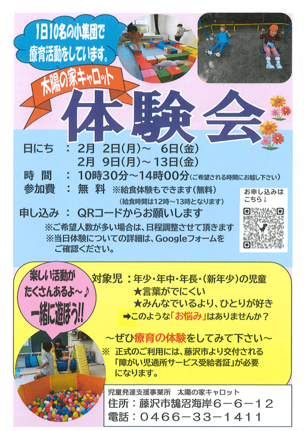 太陽の家キャロットより「体験会」のお知らせ