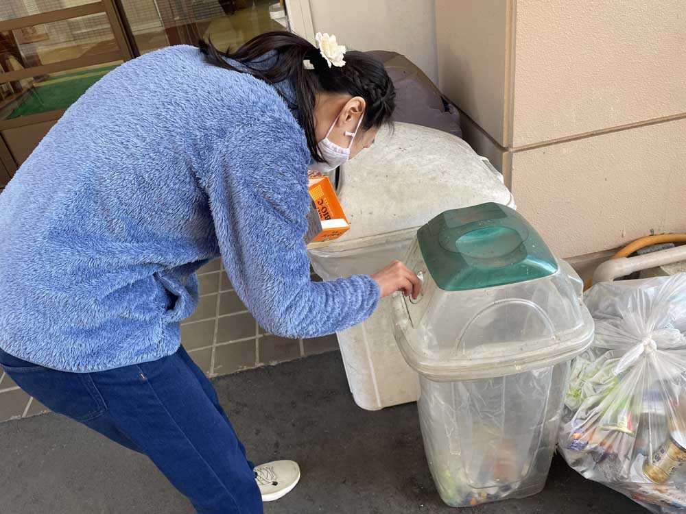 ペットボトルを分別しキャップ捨ての手伝いを職員と一緒に取り組んでいます。