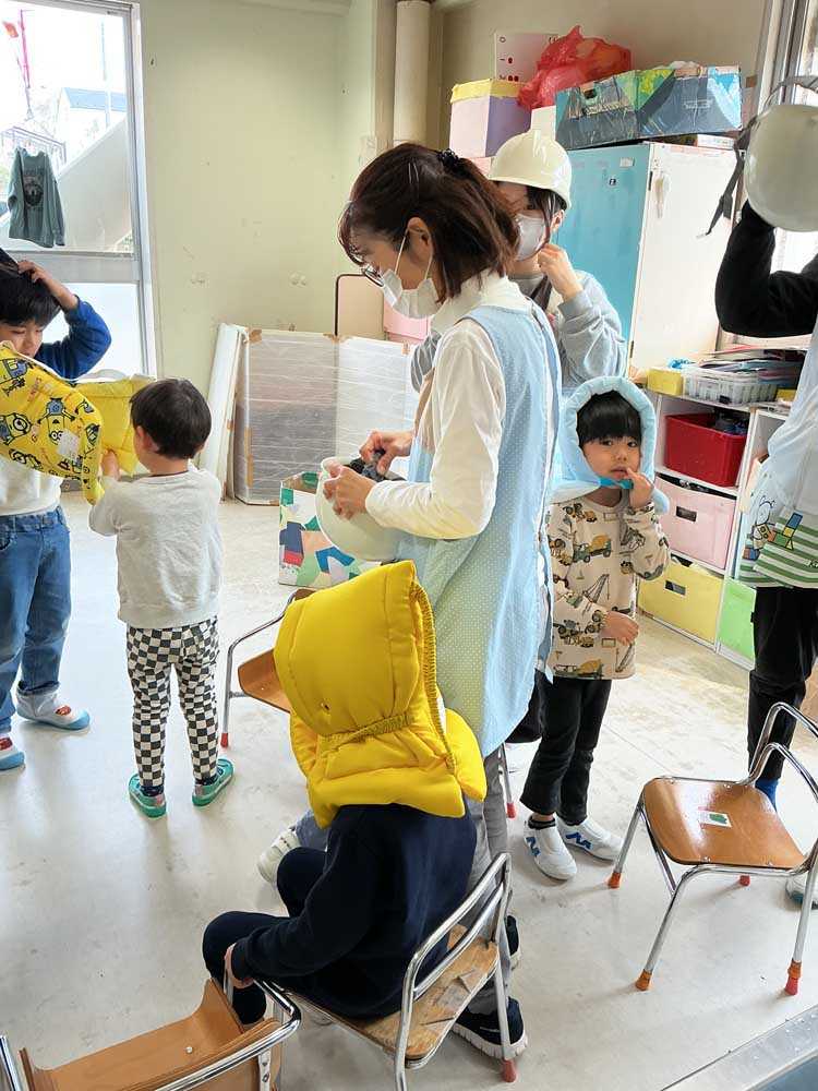 訓練を積み重ねてきたことで、サイレンの音に驚いて泣き出す児童も減り、防災頭巾も上手にかぶれるようになってきています。普段からの積み重ねの大切さを感じます。