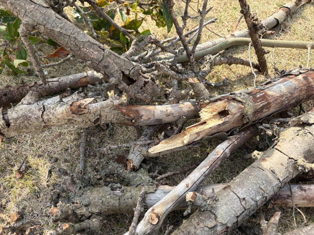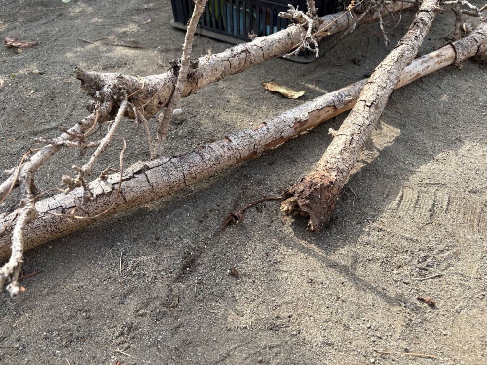 中には、枯れていてすぐに折れてしまう枝や、根のあたりから簡単に倒れてしまう木もありました。小さな木ではありましたが、子どもたちのけがに繋がるかもしれませんでした。